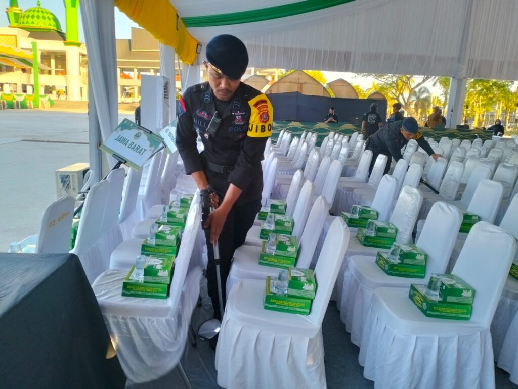 Gegana Brimob Polda Sultra Lakukan Sterilisasi Area STQH Nasional XXVIII di Kendari